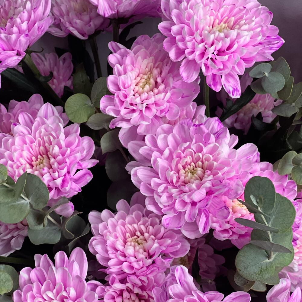 Яркое настроение и стиль можно передать этим букетом. Хризантема яркого оттенка, припудренный эвкалипт, стильное оформление упаковкой. Букет собран из самых стойких сортов цветов, будет долго радовать получателя своей красотой.